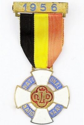 Voorzijde: Met de letters NATI ONAl en NATIO NAAL met in het centrum NLD wat staat voor Notre Dame de Lourdes.