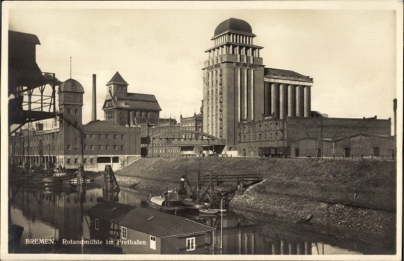 Duits meelloodje van de Rolandmühle te Bremen. Deze stoommolen is rond 1898 gebouwd en bestaat nog steeds.