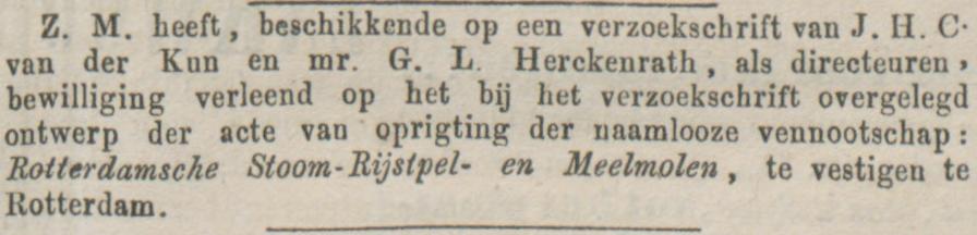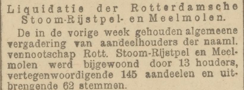vz: omschrift “DE ROTTERDAMSCHE STOOM RYSTPEL” en midden gecentreerd “MEELMOLEN”