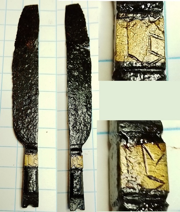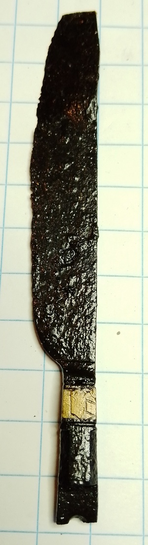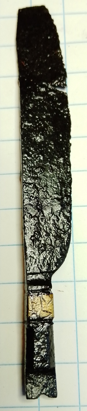 Als determinatie heeft dit mes als eerste “17e eeuws botermes” gekregen. Bij vergelijking (zie referentie) met andere messen met dergelijke messing stootplaatjes denk ik echter dat dit mes iets ouder is namelijk 1475-1600