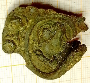 Meubelbeslag. Een portret /buste in een medaillonvorm. Is verguld geweest. Lodewijk XVI stijl (1770-1800).