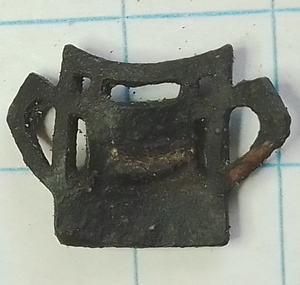 Miniatuur van iets wat lijkt op een bierpul gemaakt van verzilverd koper