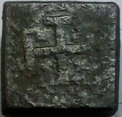 Dit is een muntgewicht voor een Spaanse gouden 4 Escudo munt (die weegt 13,42 gram). Door de ontdekking van de Spanjaarden van goud dat werd gewonnen in Amerika werden zij de grootste leverancier hiervan. Spaanse gouden munten uit deze periode werden geslagen in 5 verschillende nominaties. De grootste was 8 escudo. In de koloniën en bij piraten was de 2 escudo populair. Die werd doubloon genoemd.