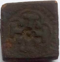 Muntgewicht voor een Spaanse 2 escudo, daarna gewijzigd met klop voor een andere munt (voor een Louis uit Frankrijk?)