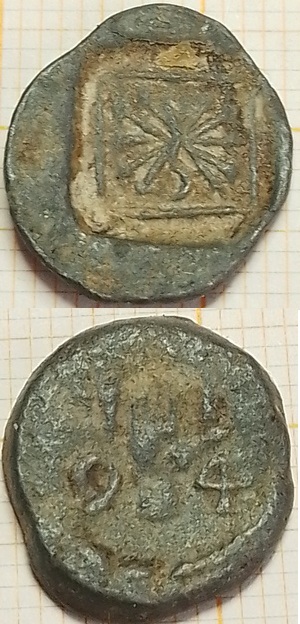 Muntgewicht van 2,58 gram waarop een afbeelding staat die ook terug te vinden is op de halve zilveren reaal van Ferdinand & Isabella (1474-1504). Deze munt weeg 2,68 gram dus dat komt redelijk overeen. Op de keerzijde is het handje van Antwerpen te zien en de initialen “I L”. Dit meesterteken heb ik nog niet terug kunnen vinden. Aangezien de munten geslagen zijn in de 15de en 16de eeuw zal het getal 94 waarschijnlijk verwijzen naar 1594