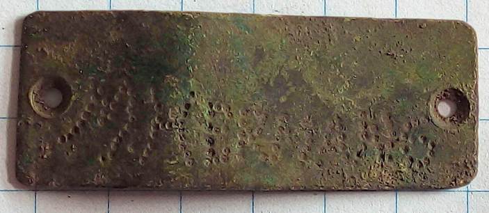 Eenvoudig naamplaatje van “M. Hermans” waarbij de letters gevormd worden door puntjes die in het koper zijn gestanst.