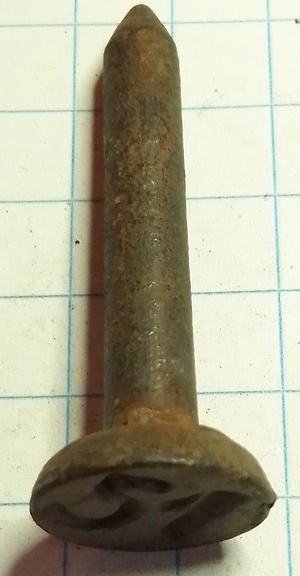 Spoorwegnagel. Over het algemeen werden genummerde nagels gebruikt voor de spoorwegen. Het cijfer duidt meestal op het jaartal waarin desbetreffende rails-biels gelegd werd. Jaren later konden ze dan zien welke bielzen vervangen moesten worden.
