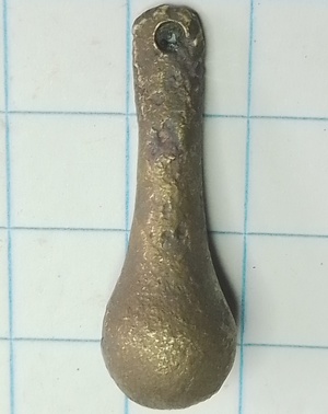 Waarschijnlijk een gewicht voor aan een gordijnkoord. Datering 19de/20ste eeuw.