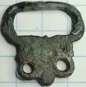 Riemverdeler (middendeel) van een gordelsluiting. Datering 1400-1649