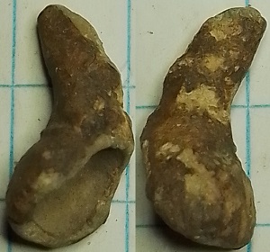 Dit object van waarschijnlijk lood heeft veel weg van een loden tand met wortel