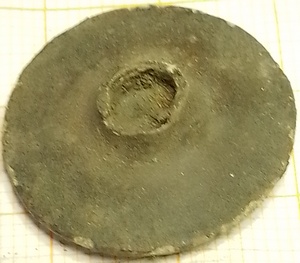 knoop plat met vulkaan-bevestiging Author: Mark Ouwerkerk Published Date: 23 mei 2024 Eenvoudige platte knoop met op de achterkant een vulkaan-bevestiging die je wel eens bij Tombak knopen ziet. Deze knoop is echter van een koperlegering. Wellicht dus een hybride knoop. Categorieën: 055 - ten oosten van Oosterhout, plat koper gegoten met gietdraadoog (1700-1815) Gerelateerde producten knoopvormig object Lees verder Webbing-gesp WWI of WWII -55-2 Lees verder Vlechtbandknoop simpel met gietoog op pootje (ca1590-1650) Lees verder object diverse-55-11 Lees verder