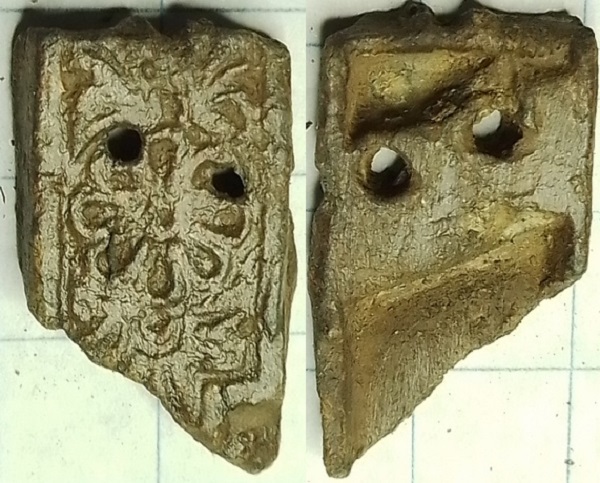 Een redelijk vergelijkbare riemtong met bloemen is terug te vinden op pag 31 van “Vechten tegen de Bierkaai. De metaalvondsten in de Bierkaai in beeld gebracht” uit 2011.
