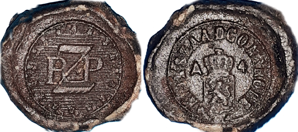 Lood van het Rijks Proefstation voor Zaad controle gevonden door Marcel Slot.