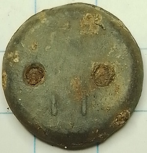 Gordijnlood of rokgewicht. Deze worden ook wel eens gevonden met een dun laagje stof/leer er omheen. Dat werd waarschijnlijk gedaan om het schuren tegen te gaan.