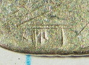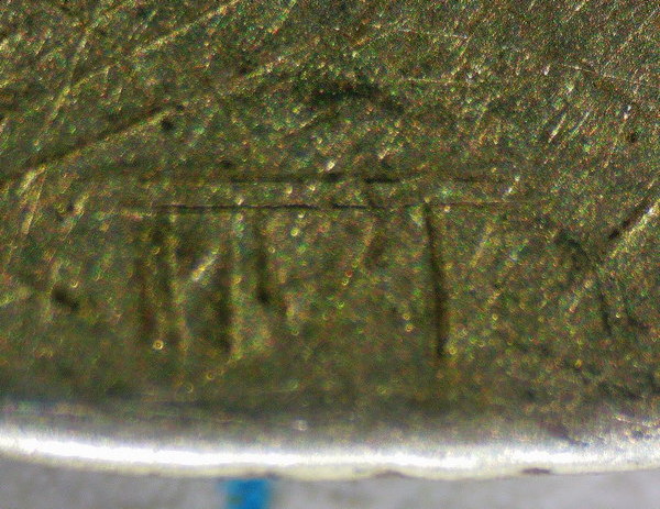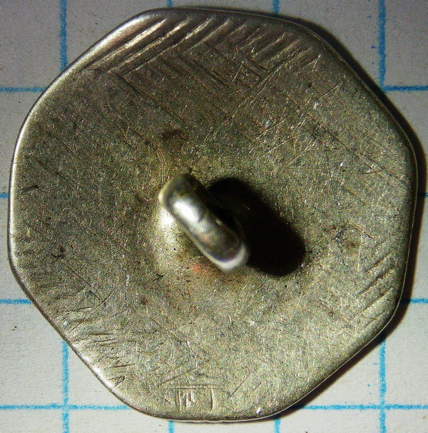 In de bijlage een foto van het slecht zichtbare zilvermerkje. Door de informatie van de heer Hoeks weten we echter dat het gaat om een knoop van Arend de Vries een zilversmid uit Meppel die actief was in de jaren 1760-1786. Een vergelijkbare knoop staat op pagina 91 in het boek “350 jaar zilverstad Meppel” van J. Timmer.