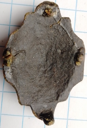 Beslag in een reliëf oplopende hexagoon (zeshoek). Heeft op 4 punten vast gezeten.