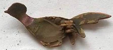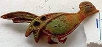 Speld in de vorm van een fazant. Er ontbreken 2 steentjes/stukjes glas die op de vleugel hebben gezeten.