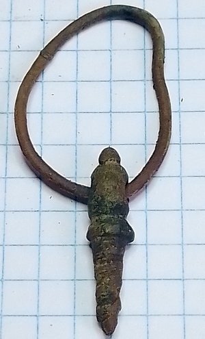 Kleine trekring met schroefbevestiging. Het schroevende gedeelte werd in het hout gedraaid.