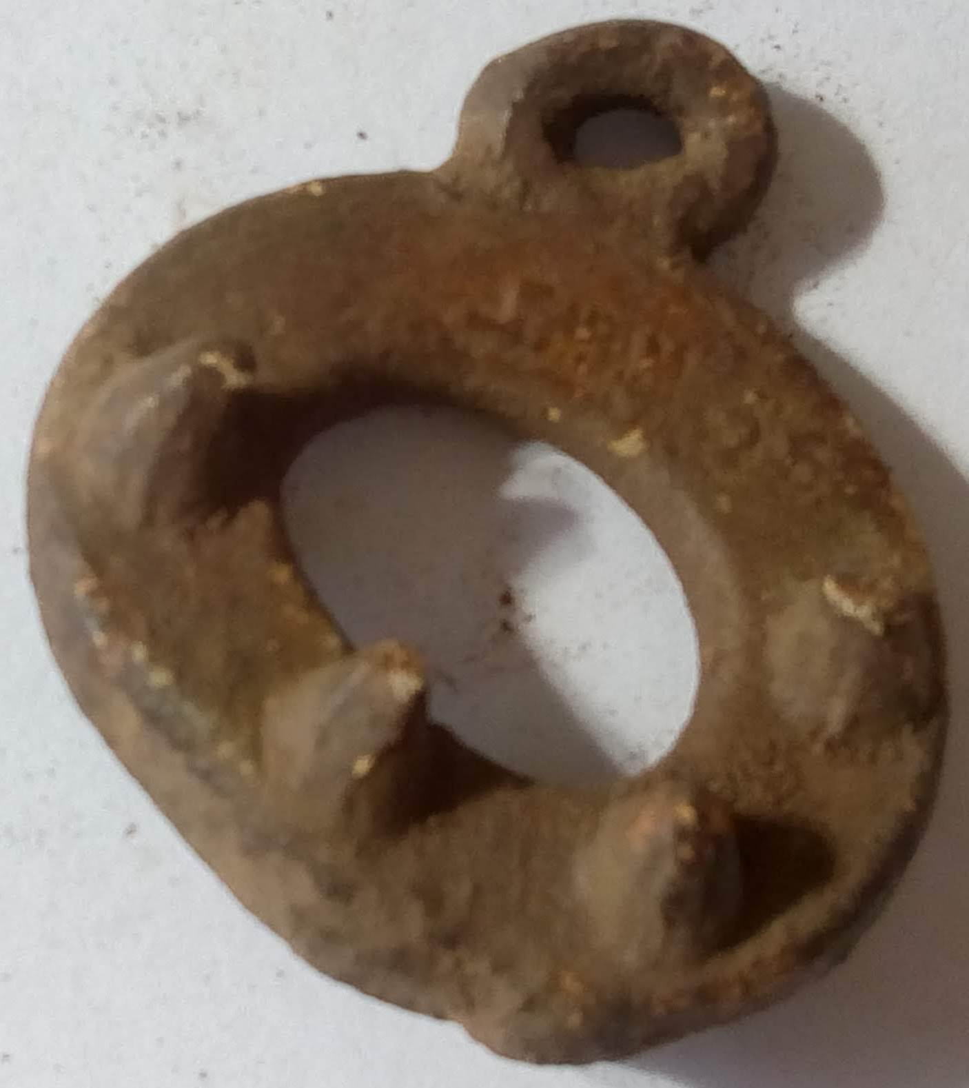 Twee vissleeploodjes. Vissleeplood werd voornamelijk gebruikt om op paling te vissen.