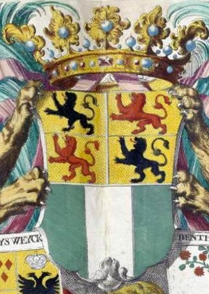 Het wapenschild van Rotterdam is verticaal opgedeeld in twee delen. Het bovenste deel is opgesplitst in vier gelijke vlakken waarin vier naar links klauwende leeuwen staan. Het onderste deel is verticaal opgedeeld in drie vlakken.
