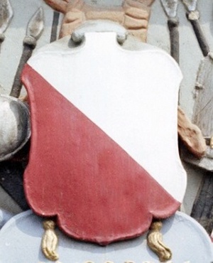 Het wapenschild van Utrecht is een schild die van links boven tot rechts onder diagonaal in twee vlakken is verdeeld